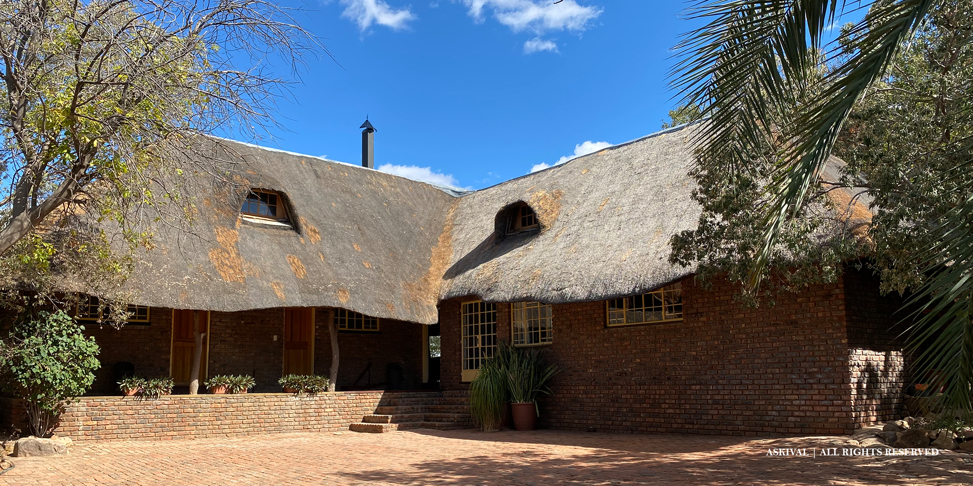 Askival Lodge – a brick and thatch structure - is set upon a tall and steep kopje with long views to both the north – still remarkably light pollution free – and to the stunning Blouberg Mountains, 30 kms to the south.