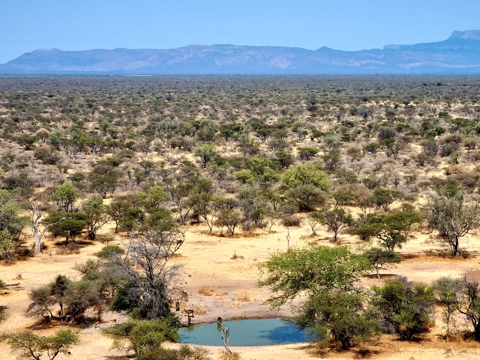 Unusually for the region, the bush – comprising chiefly acacia, but with abundant pockets of sesame, comifera, blackhook thorn and marula- is also complimented by open savannah plains and numerous dams and waterholes which are supported in the dry season by a strong aquifer running below the entire property. The ground is chiefly flat but contains one large and steep kopje, upon which the lodge is built, and some rolling rocky, well vegetated hills to the west. This variety of habitat enables a wide range of wildlife to thrive under all seasonal conditions, making visits rewarding throughout the year.
